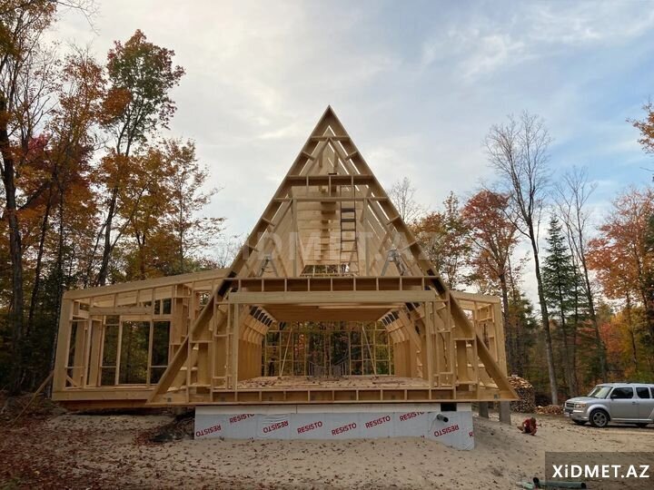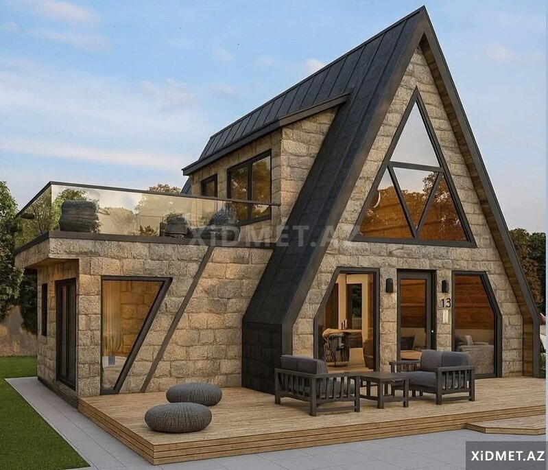 Bütün növ tikinti və təmir işlərinin qısa zamanda və keyfiyyətli şəkildə aparilmasi Evlərin Ofislərin Bağların Anbar və mini stadionlarin Tikintisi