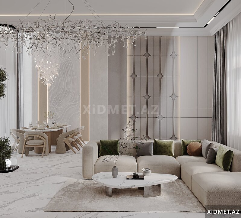 Əgər siz də evinizi xəyal etdiyiniz kimi görmək istəyirsinizsə, bizə müraciət edə bilərsiniz. Qiymətlərimiz çox münasibdir. Xidmətlərimiz: 1. İnteryer Dizayn: Evdə hər bir otağın estetik və funksional tərtibatını təmin