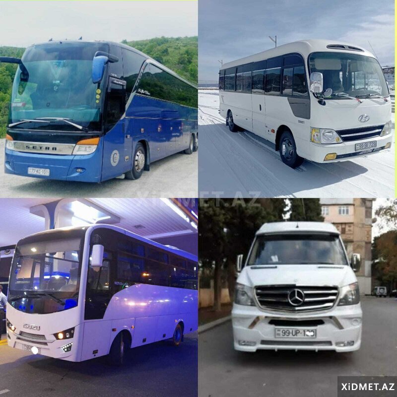 100 Aznİstənilən istiqamətlərə hər növ və hər tutumda VİP Avtobusların sifarişi . TƏCRÜBƏLİ SÜRÜCÜLƏRİMİZ-tam təhlükəsiz şəraitdə xidmətinizdədir. Şirkətlərdə aylıq SERVİS-xidməti üçün əlaqə yarada bilərlər.( İŞÇİLƏRİN